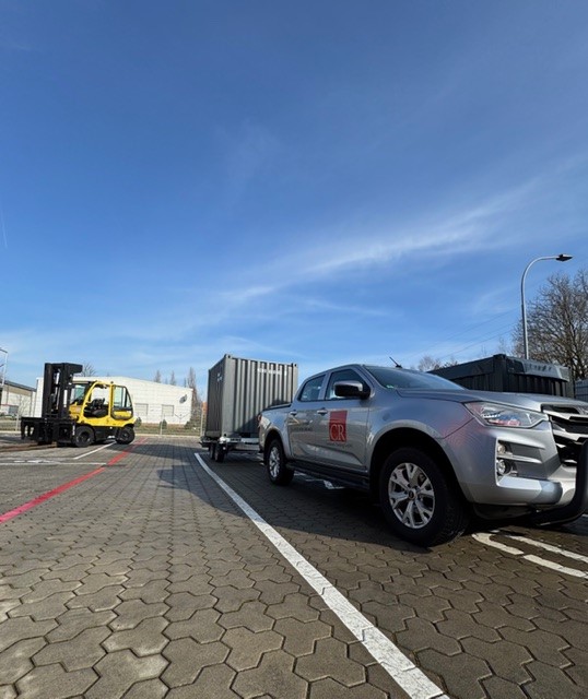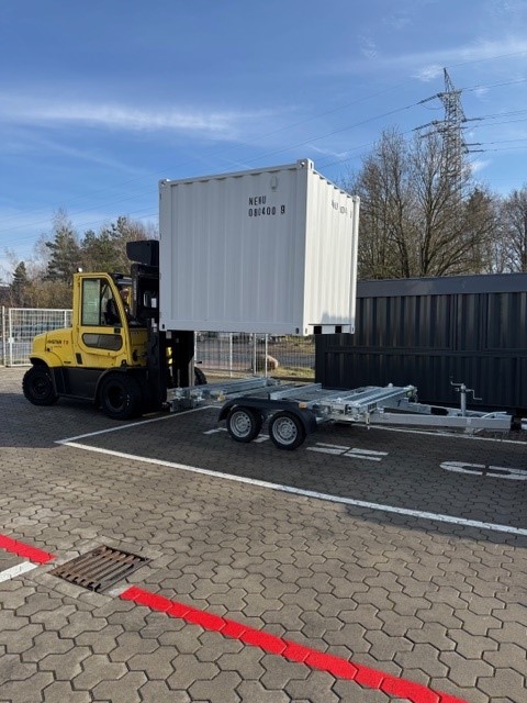 Mit unserem eigenen Truck und Anhänger bringen wir Ihre gekauften 6' DV, 8' DV & 10' DV Container bis zum gewünschten Lieferort.